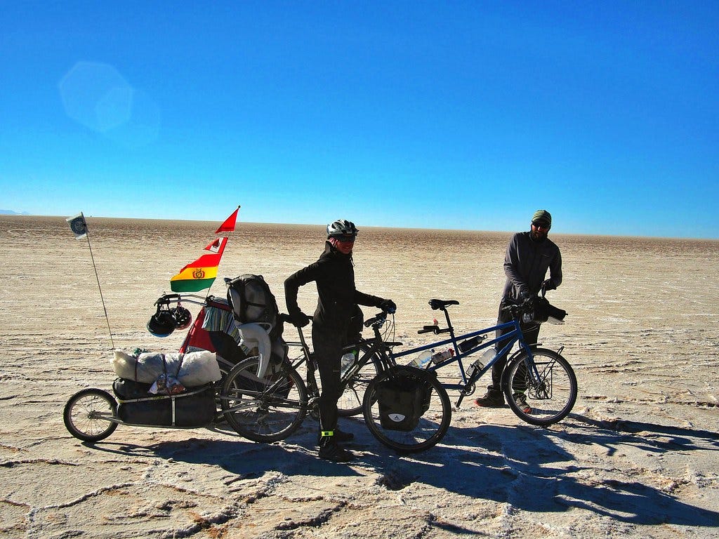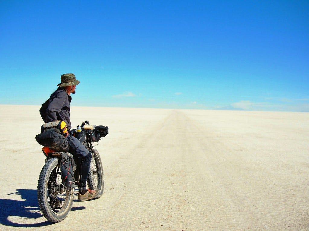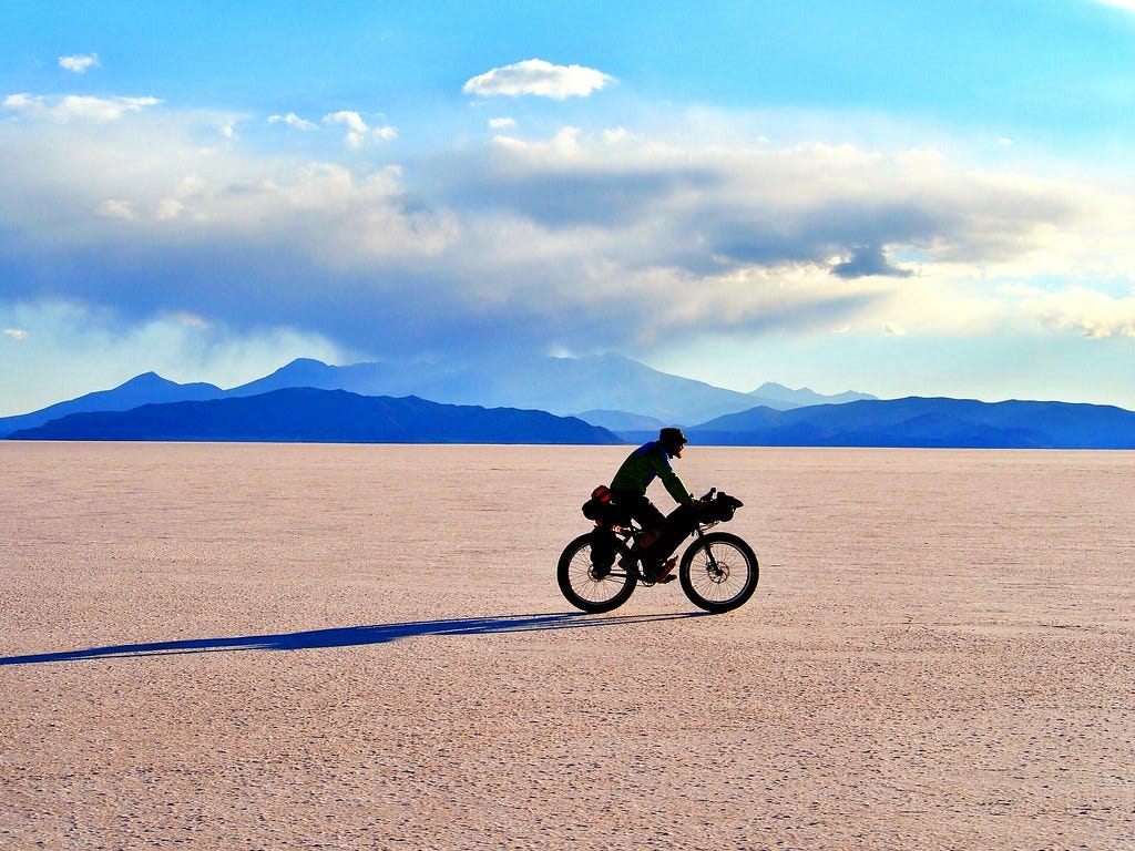 As the last of the tourist jeeps leave, we ride on to find a campsite at the edge of the Salar.