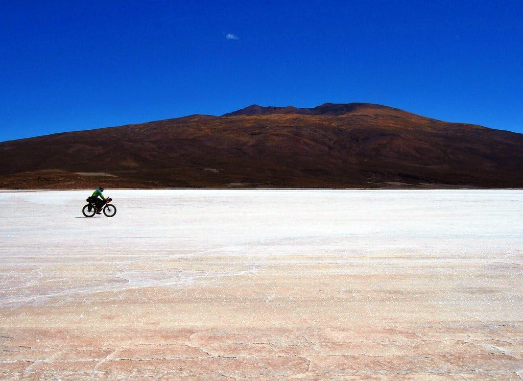 Riding on the following morning we reach a quieter side of the Salar away from the buzz of tourist jeeps.