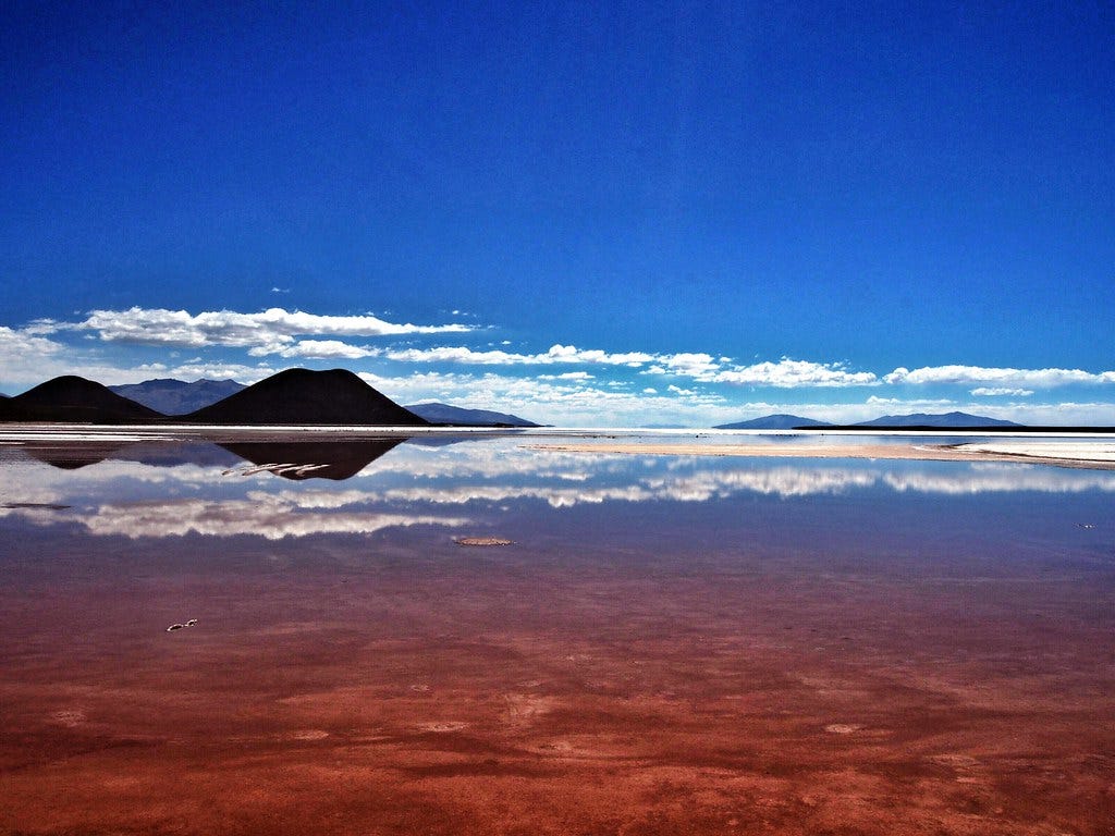 Riding free form across the Salar following a compass bearing, we eventually reach the end of the Salar and with it a reminder of what lurks underneath the thick salty crust; Water.