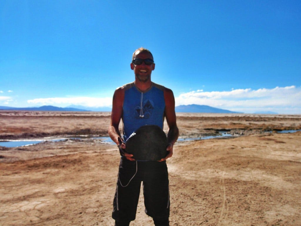 As we approach the Salar De Copiasa, we remember some advice we are given. Cass got the wrong idea when they said "carry a stone to knock the tent pegs in".